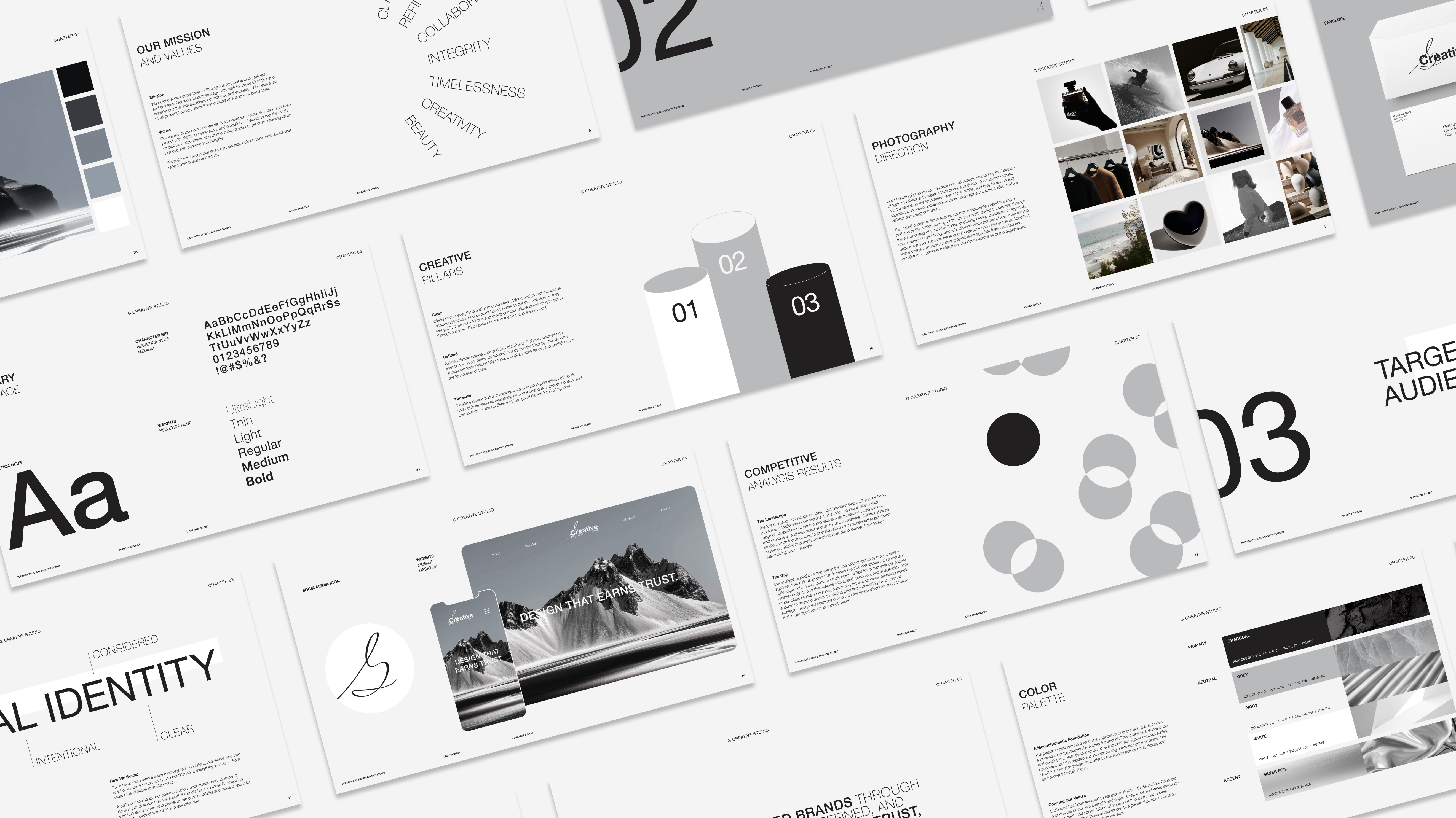 G Creative Studio is a self-directed creative identity built as a foundation for brand thinking and visual systems. Designed to be cohesive and enduring, the work focuses on clarity, refinement, and structure, creating a framework that can scale and evolve over time.